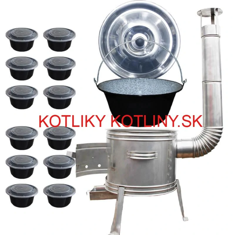 Kotlíková súprava na outdorové varenie guláša a rybích polievok v prírode, v záhrade alebo v otvorenej kuchyne, predovšetkým pre chalupárov, chatárov, do kempu a na táborenie. Pri použití koša v kotlíku na varené mäsa, jaterníc, klobás, zeleniny do polievky a konzerv.